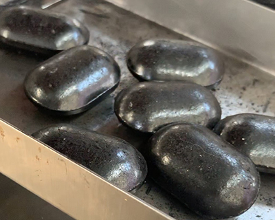 • 碳粉塊壓制成球形